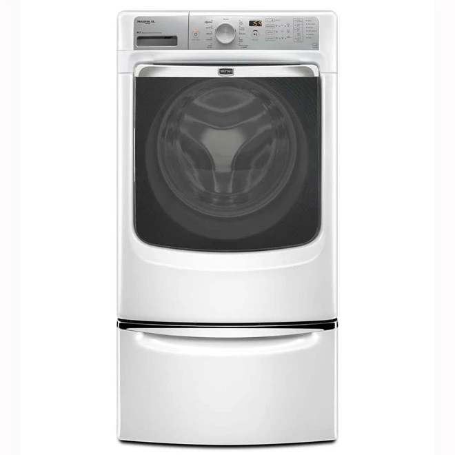 Doing laundry is easier with this Whirlpool laundry pedestal. The pedestal raises your front-load washer or dryer, so you don’t have to bend or strain when removing or adding laundry. The pedestal includes a convenient storage drawer to hold laundry supplies such as detergent and softener. The chrome handle is a stylish accent on this pedestal that ensures a comfortable grip when opening and closing the storage drawer. It features a white finish to complement your laundry machines and is easy to install..