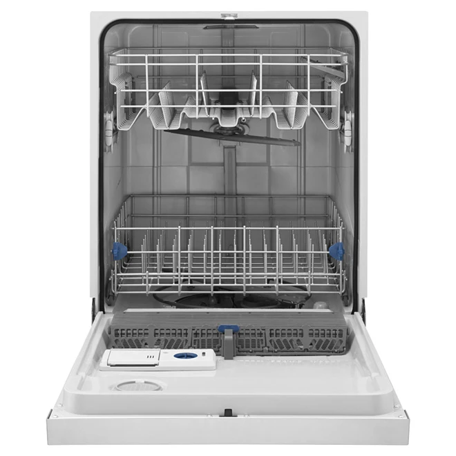 Leave the decisions to your 24-in Whirlpool dishwasher. It features a sensor cycle that automatically adjusts wash and dry settings to deliver precise results. This Energy Star-qualified dishwasher holds 15 place settings and cleans quietly at 53 dB. It also provides more room for dishes in the lower rack with the AnyWare Plus silverware basket that sits in the door or on the front of the rack to free up rack space. This dishwasher also offers a convenient 1-hour wash option. Plus, it has a beautiful stainless steel finish. Backed by a 1-year warranty on parts and labour.