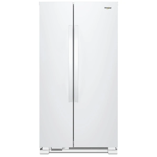 Get plenty of storage space with this 21 cu ft refrigerator from Whirlpool. Featuring a side-by-side design, it is equipped with electronic controls and LED lighting, and offers great flexibility with adjustable door bins, spill-proof glass shelves, humidity-controlled drawers, and a dairy compartment. The freezer features 4 wire shelves and a plastic shelf, and has an adaptive defrost system that runs the cycle only when necessary. An optional icemaker can also be added.