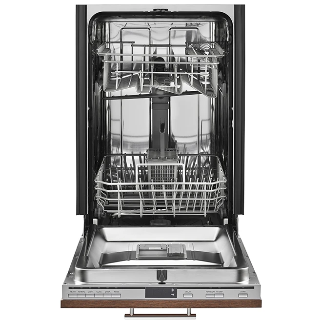 Get sparkling clean dishes quickly with this Whirlpool built-in dishwasher. Match the look of your dishwasher to the rest of your kitchen by choosing your customized panel (sold separately). Thanks to its cycle memory, this dishwasher remembers your last cycle to automatically choose it next time. It provides a quiet cleaning performance during clean-up with a sound level of just 50 decibels. Use the normal cycle for everyday use. The heavy cycle takes care of hard-to-clean dishes. Furthermore, the glass cycle provides glassware with the right sparkling cleanliness. Get a more thorough clean with a high-temperature wash and dry dishes better with the heated dry option. This product is both ADA compliant and Energy Star certified. Moreover, it is backed by a 1-year limited warranty of parts and labour.