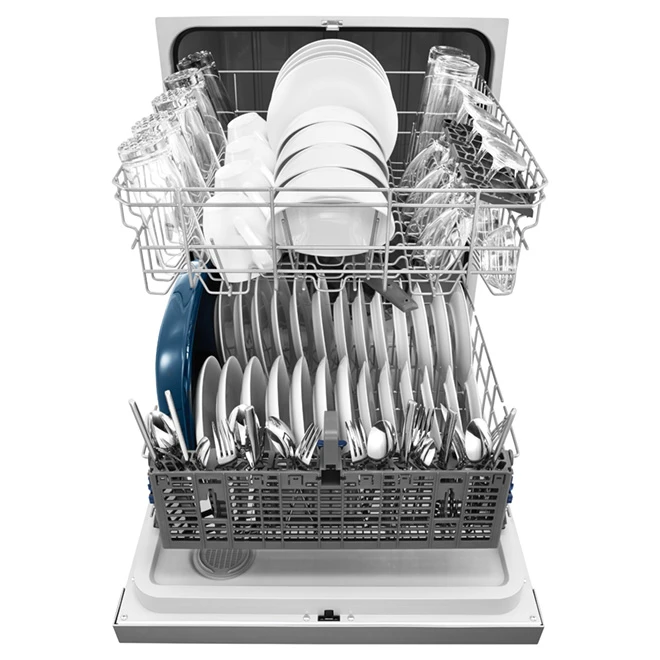 Leave all the choices to your Whirlpool dishwasher with the sensor cycle that automatically adjusts wash and dry settings to deliver great results. This dishwasher offers a convenient 1-hour wash option. This Energy Star-qualified appliance can hold 15 place settings and cleans quietly at 53 dB. It also provides more room for dishes in the lower rack with the AnyWare Plus silverware basket that sits in the door or on the front of the rack to free up rack space.