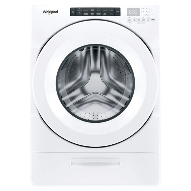 This versatile Whirlpool washer combines ease of use with cleaning performance. Its maximized depth design adds installation possibilities, while its 5.2 cu ft capacity can accommodate very large loads. It has a built-in Load & Go dispenser that can hold enough detergent to wash 40 loads without any recharge. The steam cleaning option eliminates everyday stains by penetrating fabrics through more intense wash movements and higher temperatures. In addition, you can achieve significant energy savings while preserving the quality of your fabrics with the cold wash cycle. Finally, 37 settings can be customized to meet your specific needs. Backed by a 1-year limited warranty on parts and labour.