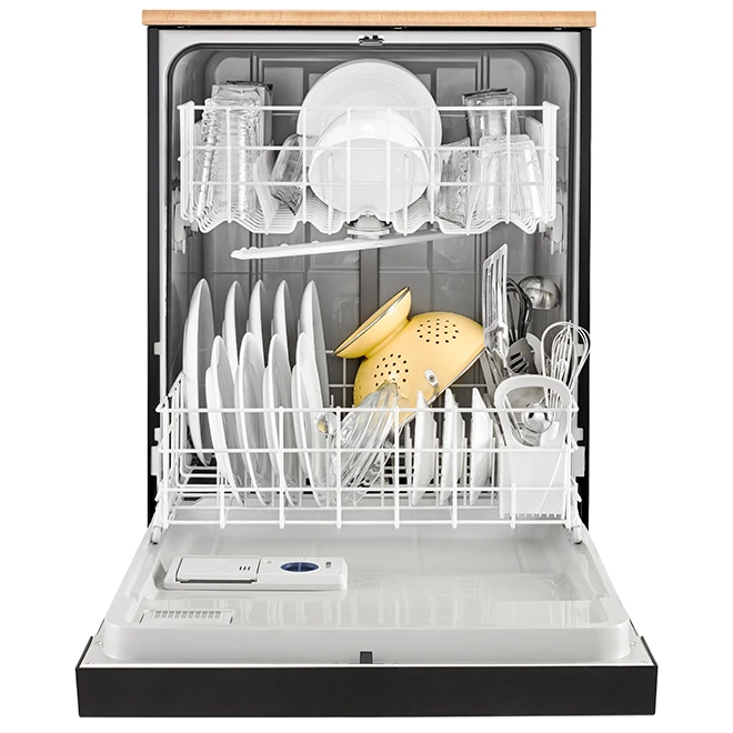 Get the right clean every time with this heavy-duty dishwasher by Whirlpool. Perfect for small kitchens, this dishwasher can be stored in a corner and rolled out to the sink when it’s time to wash the dishes. The 1-hour wash cycle allows you to obtain clean dishes in less time. The soil sensor option adjusts the wash cycle according to the soil level of dishes to offer high-performance cleaning. The high-temperature wash option will give your dishes a more thorough clean and the heated dry option provides optimal drying results. This product is backed by a 1-year limited warranty on parts and labour and the power cord is included.