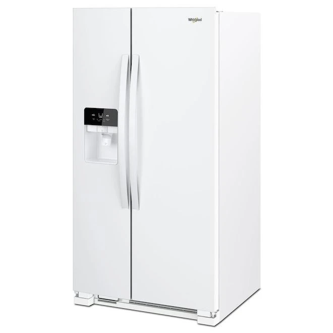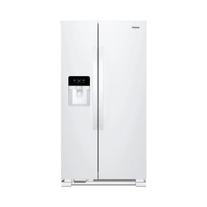 This side-by-side refrigerator by Whirlpool has tap touch controls and a beautiful white exterior that will bring a modern touch to your kitchen. This appliance is equipped with an exterior water and ice dispenser, and an adaptive defrost system in the freezer that saves energy by running the cycle only when necessary. Plus, it offers plenty of storage options thanks to its 4 frameless glass shelves, a deli drawer, 3 adjustable door bins, a humidity-controlled crisper, and a can caddy. This appliance comes with a 1-year limited warranty.