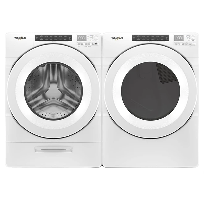 Dry large items and larger loads with this Whirlpool(TM) electric dryer and its 7.4 cu. ft. capacity. It is also the ideal appliance when it comes to fabric care. The advanced sensing system features 3 sensors that constantly monitor humidity and temperature levels by adapting the drying time accordingly, which prevents your fabrics from overdrying. The Wrinkle Shield option protects clean clothes from wrinkles with intermittent tumbling after the dryer cycle ends. Also, the dryer is equipped with intuitive controls for easy cycle selection. These controls let you configure up to 36 custom settings for optimal fabric care. Finally, 4 baffles tumble clothes in a randomized pattern, allowing them to move more freely in the tub, which is very convenient for smaller loads. Backed by a 1-year limited warranty on parts and labour. It is highly recommended to use a 4″ (10.2 cm) diameter rigid aluminum or galvanized steel duct with this unit.